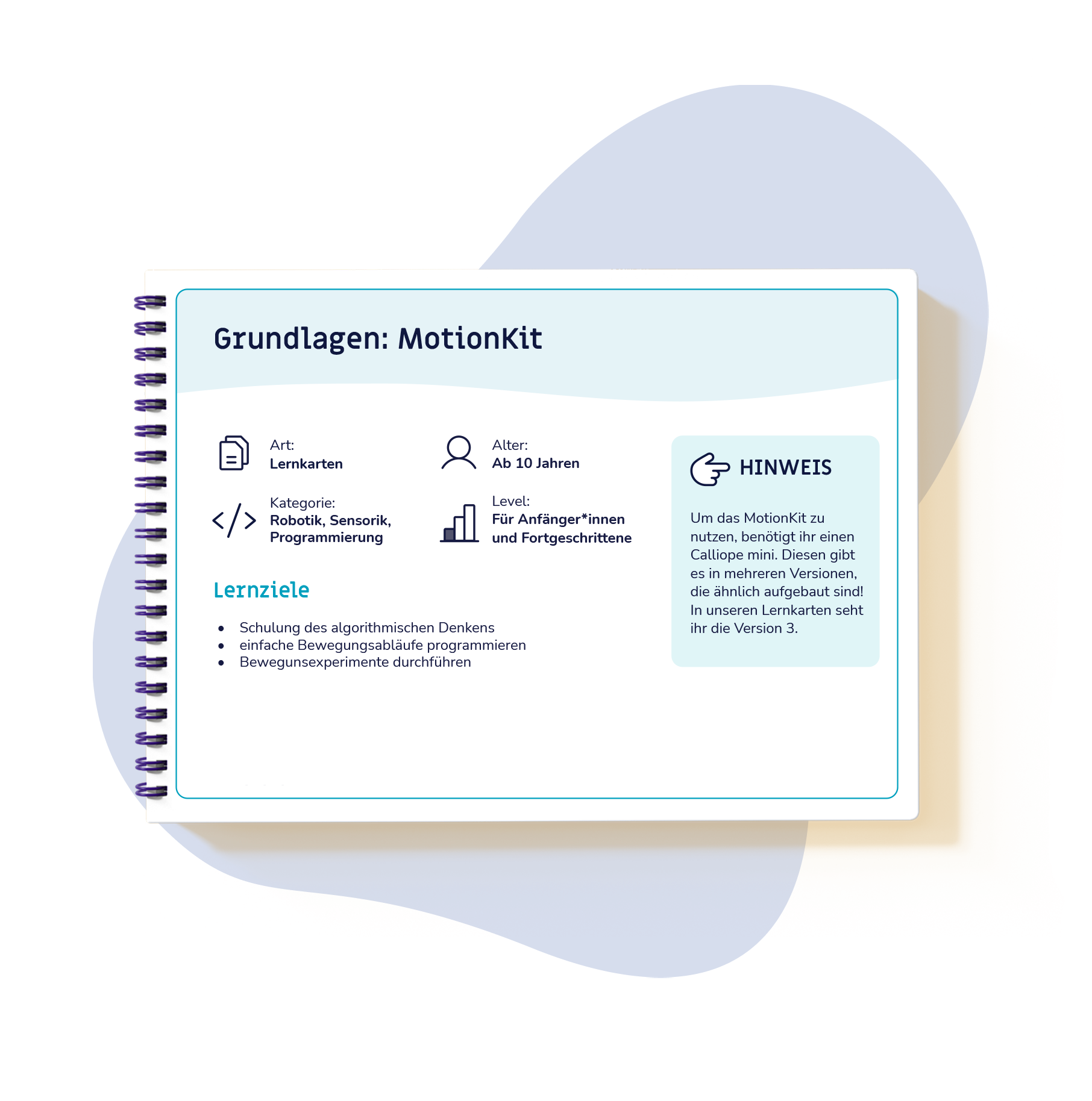 Der Calliope mini ist ein Mikrocontroller der das Programmieren kinderleicht macht. Unsere Lernkarten dienen euch als Einstiegshilfe und können ohne Vorkenntnisse genutzt werden.