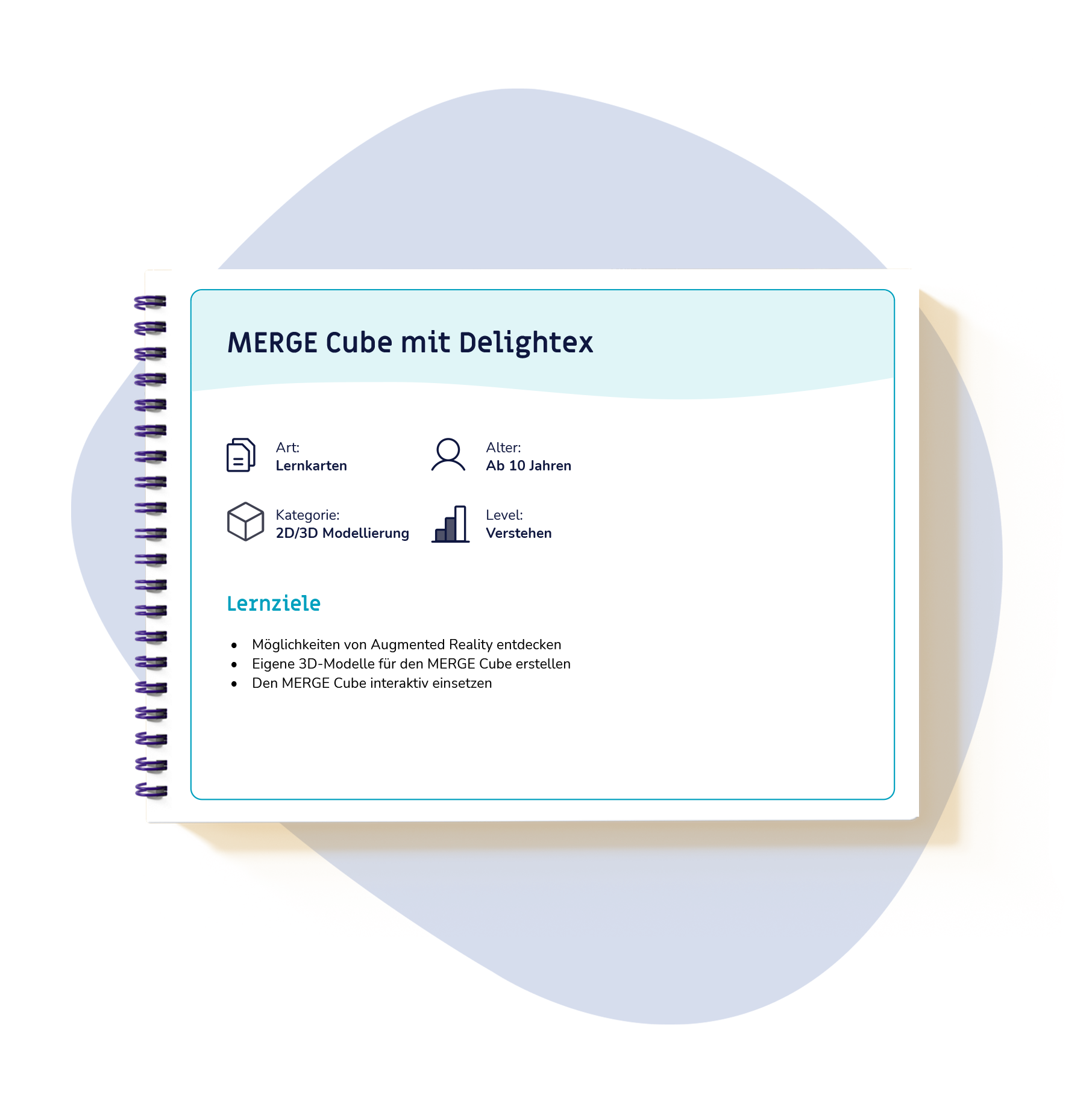 Mit unseren Lernkarten gelingt euch der Einstieg ganz einfach: Schritt für Schritt zeigen sie, wie ihr mit Delightex eigene 3D-Modelle und kleine virtuelle Welten erstellt und auf dem MERGE Cube erlebt. Ideal für euren Unterricht, Workshops oder zum eigenständigen Entdecken.