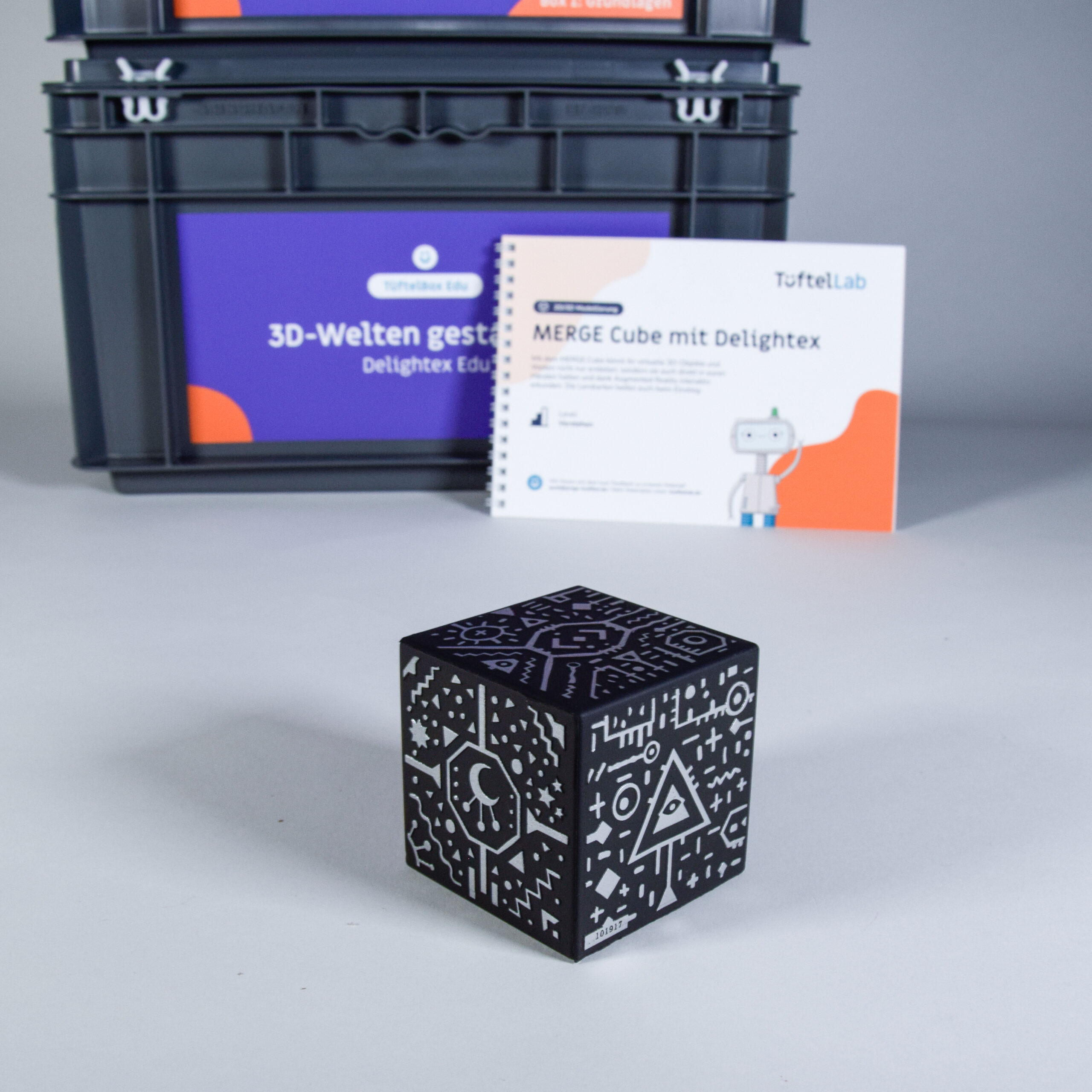 Die Box enthält alles, was ihr für den sofortigen Einsatz braucht, als Klassensatz für 10 Teams mit jeweils bis zu 3 Lernenden: von analogen und digitalen Lernmaterialien, einem strukturierten Einstiegsprojekt bis hin zu vielseitigen Projektideen für den Unterricht, der zugehörigen Technik und bei Bedarf inklusive einer Jahreslizenz Delightex Edu & MERGE Cube mit 15 Accounts.
